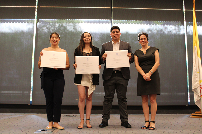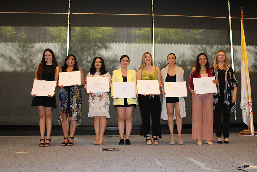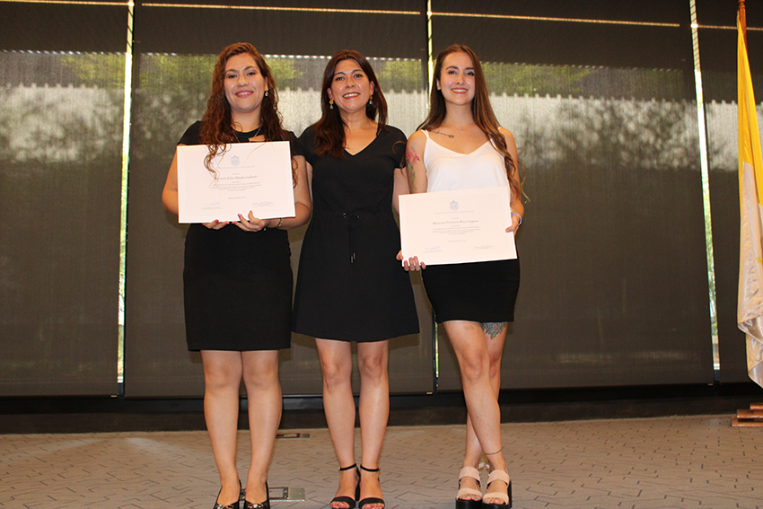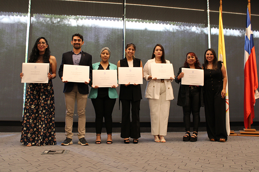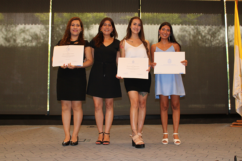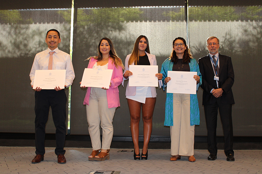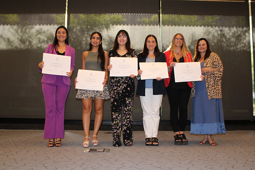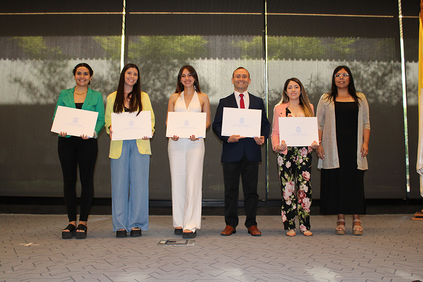 Además de la entrega delos certificados se reconoció la labor destacada a estudiantes de cada diplomado por su excelencia académica, la mención fue para: Daniela Toloza en Manejo Fonoaudiológico en Unidades de Paciente Crítico Adulto, Gabriela Ravest en Nutrición Clínica para Nutricionistas, Nadia Rivera de Kinesiología Cardiovascular, Rocío Mellado de Kinesiología en Cáncer y Natalia Muñoz de Kinesiterapia en el Paciente Crítico Adulto.