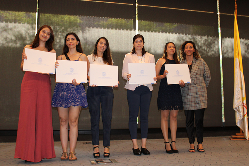 Los titulados corresponden a los diplomados en: Manejo Fonoaudiológico en Unidades de Paciente Crítico Adulto, Kinesiología Cardiovascular, Kinesiología en Cáncer, Kinesiterapia en el paciente Crítico Adulto y Nutrición Clínica para Nutricionistas, correspondientes a las carreras de Fonoaudiología, Kinesiología y Nutrición y Dietética respectivamente.