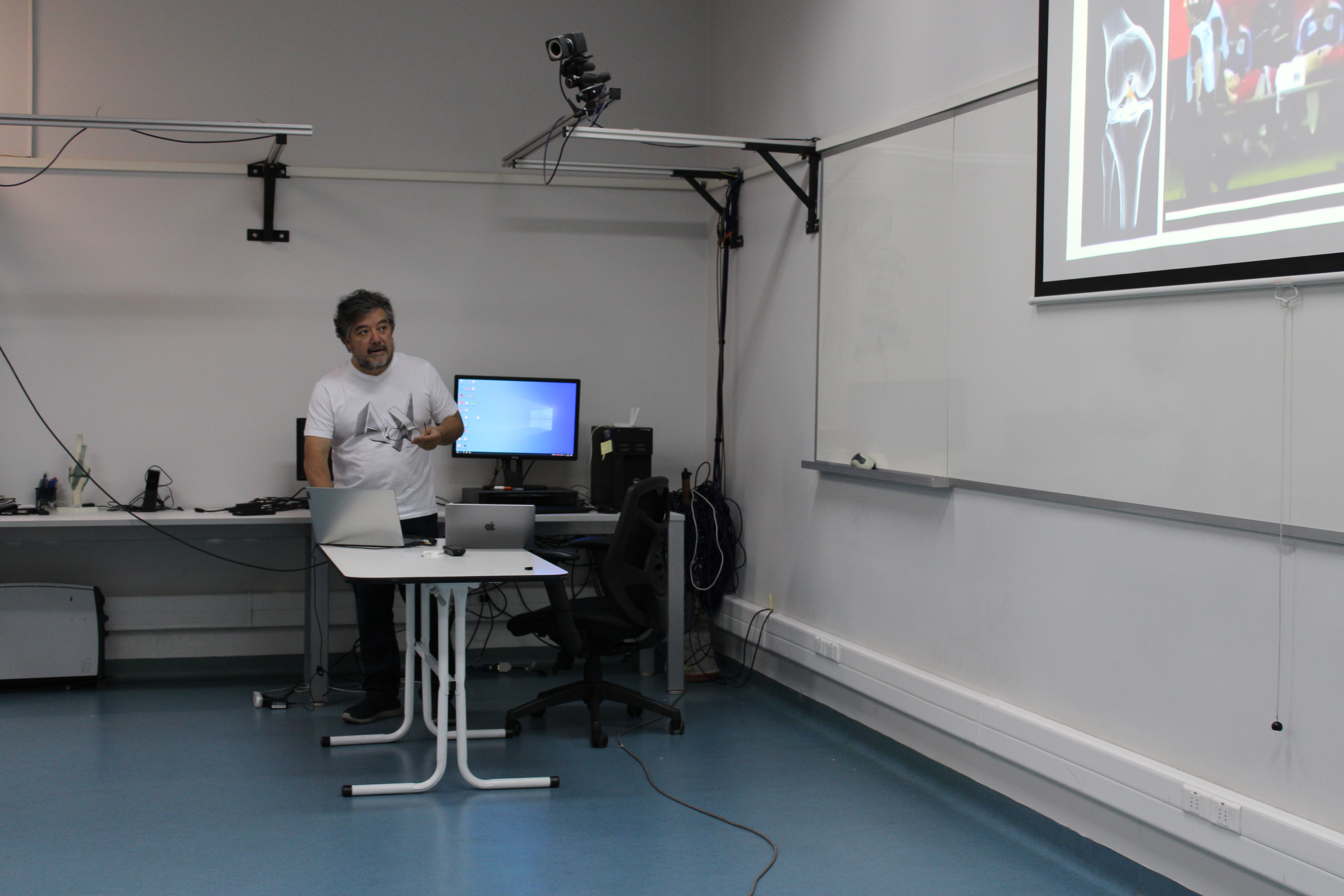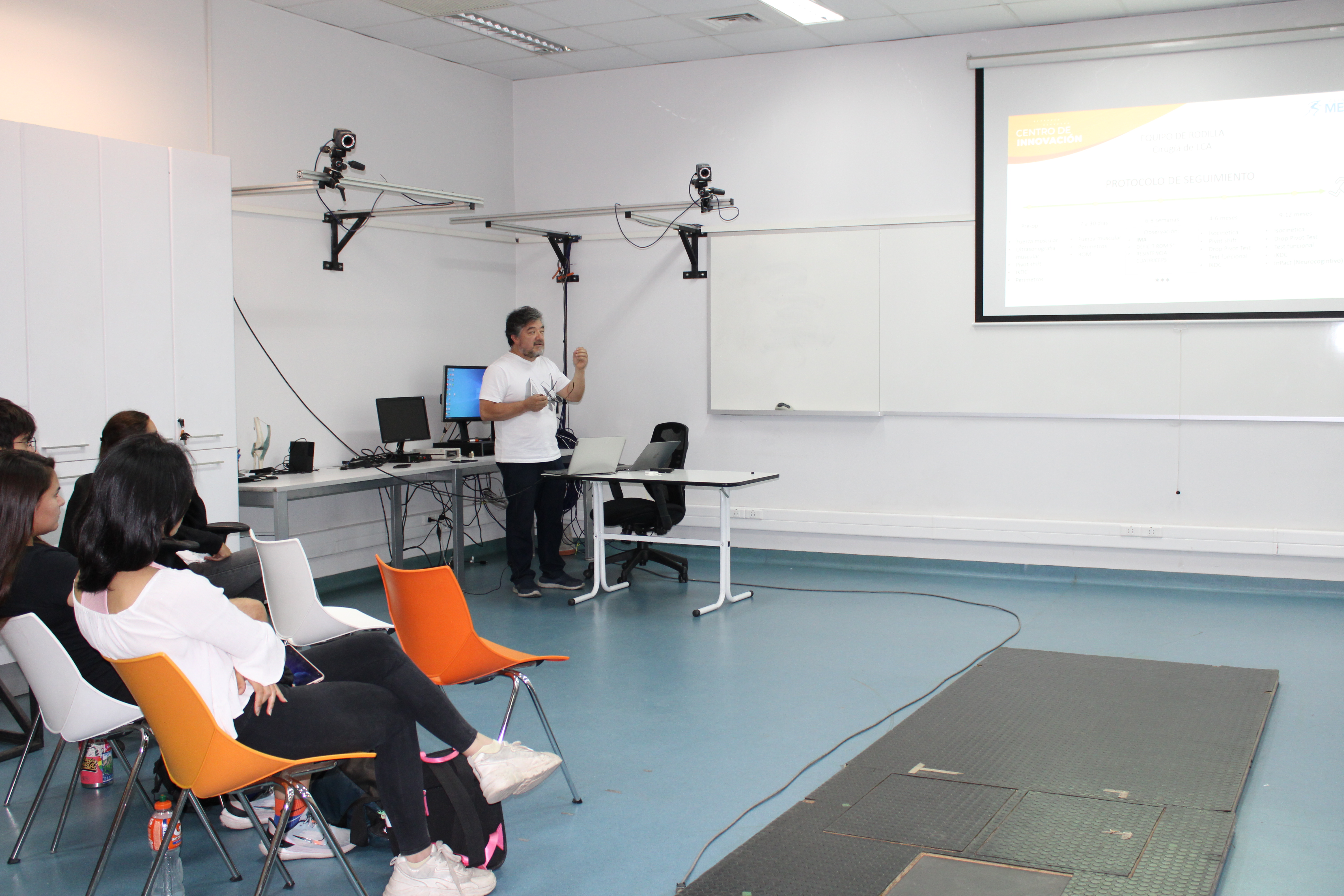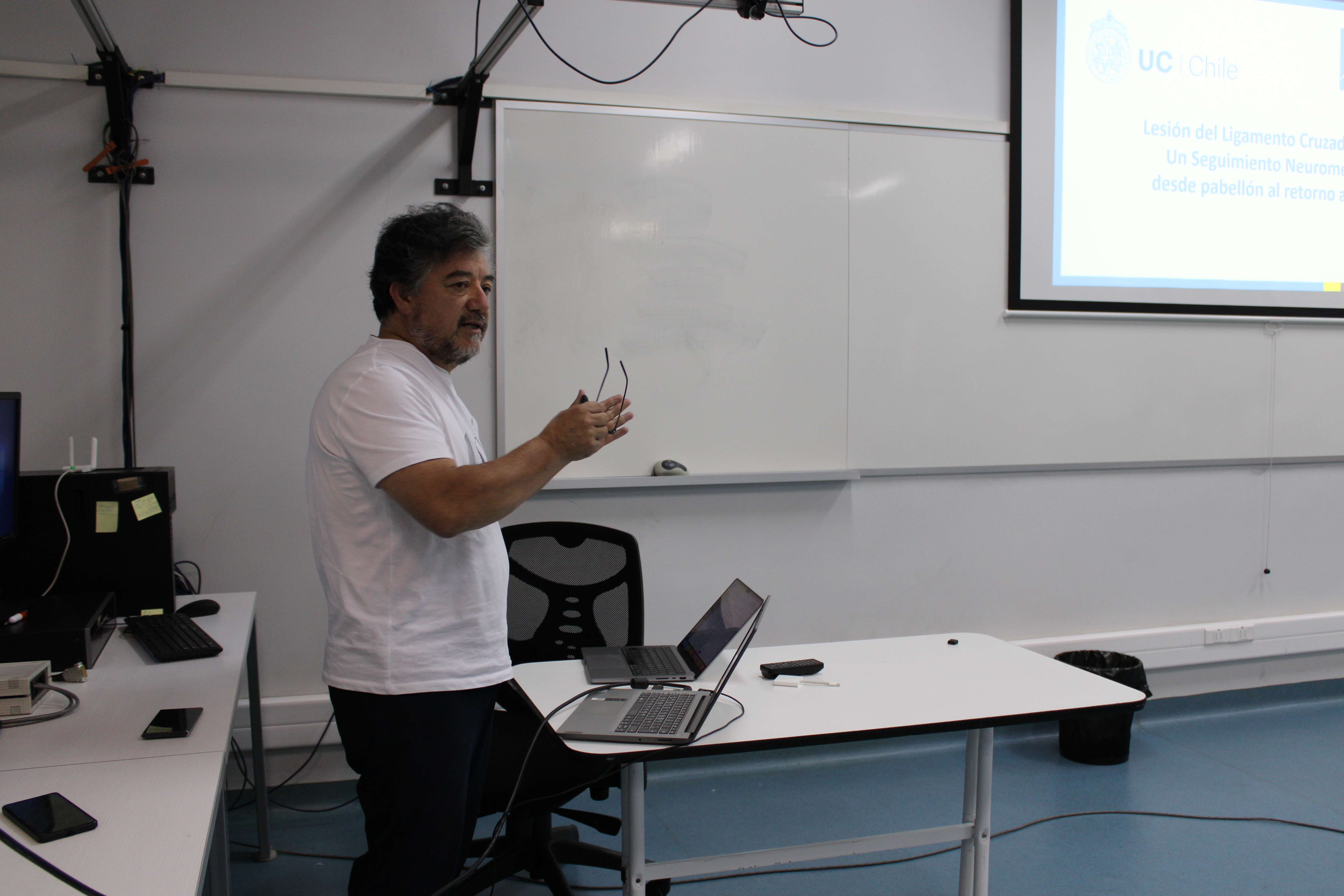 “Lesión del Ligamento Cruzado anterior. Un seguimiento neuromecánico desde el pabellón al retorno al deporte” fue el nombre de la exposición inaugural a cargo de Rony Silvestre, kinesiólogo y académico del Laboratorio de Análisis y Movimiento, quien, según investigaciones, dio a conocer la importancia de considerar el entrenamiento neurocognitivo, a la hora de volver a la competencia.