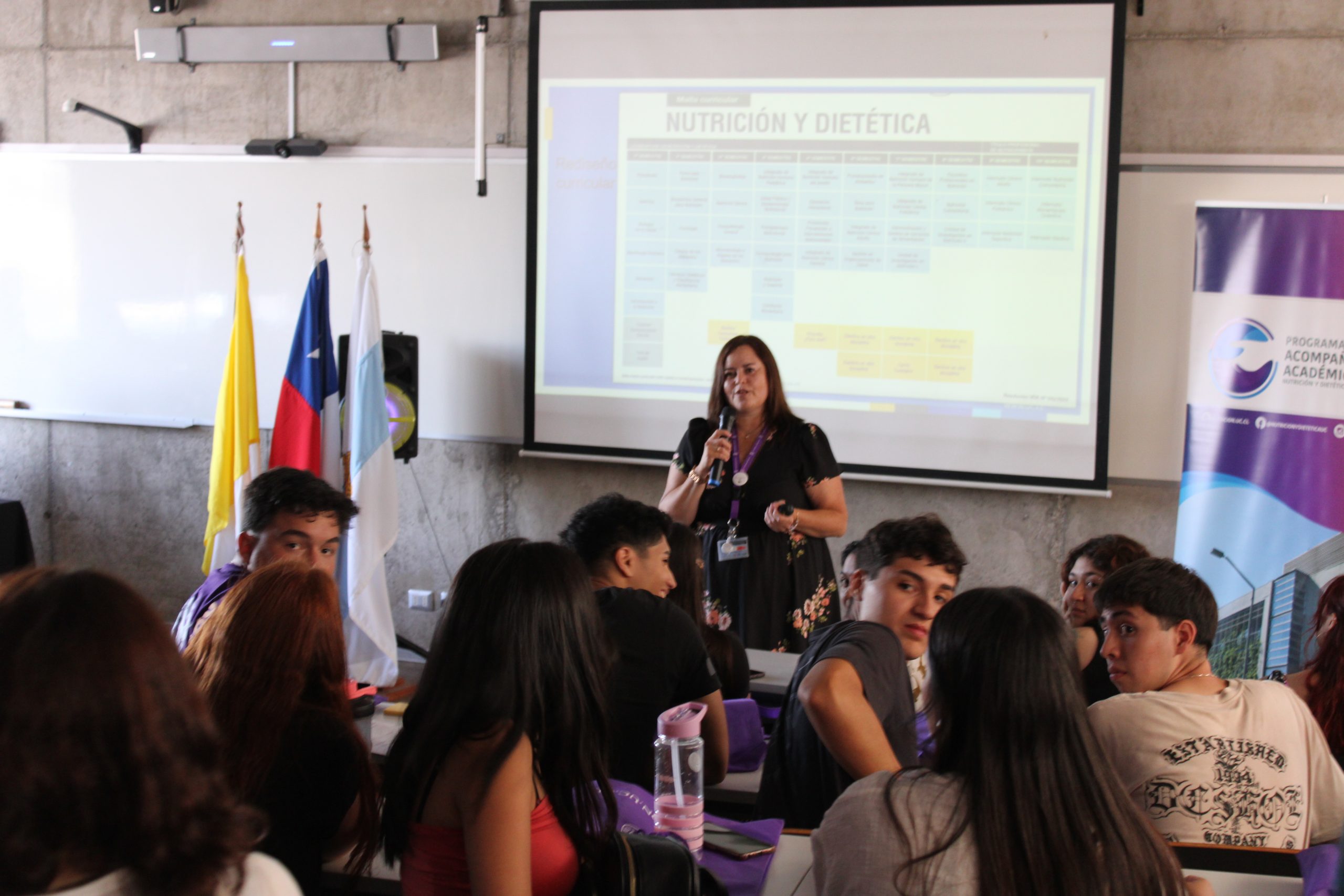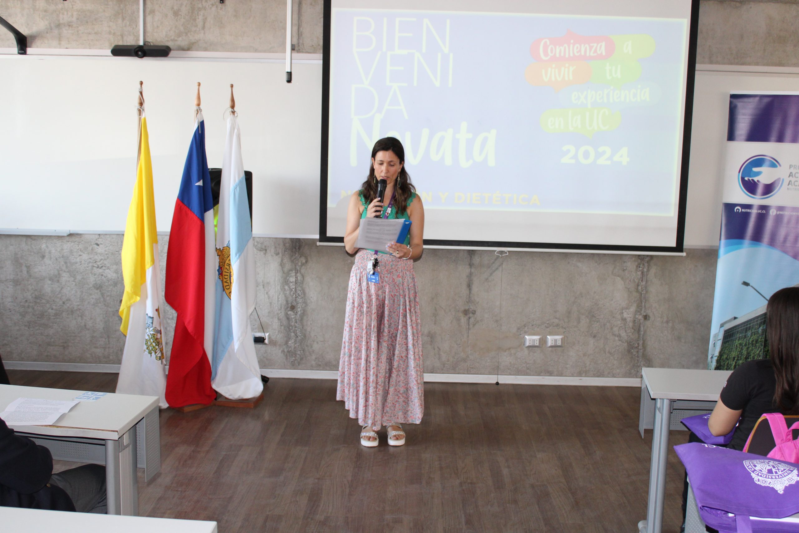 Asimismo, las directoras de cada carrera junto con dar la bienvenida a sus nuevos estudiantes presentaron el cuerpo académico, áreas de estudios y malla curricular. También, se presentaron cada uno de los centros de alumnos, representantes de pastoral y biblioteca.