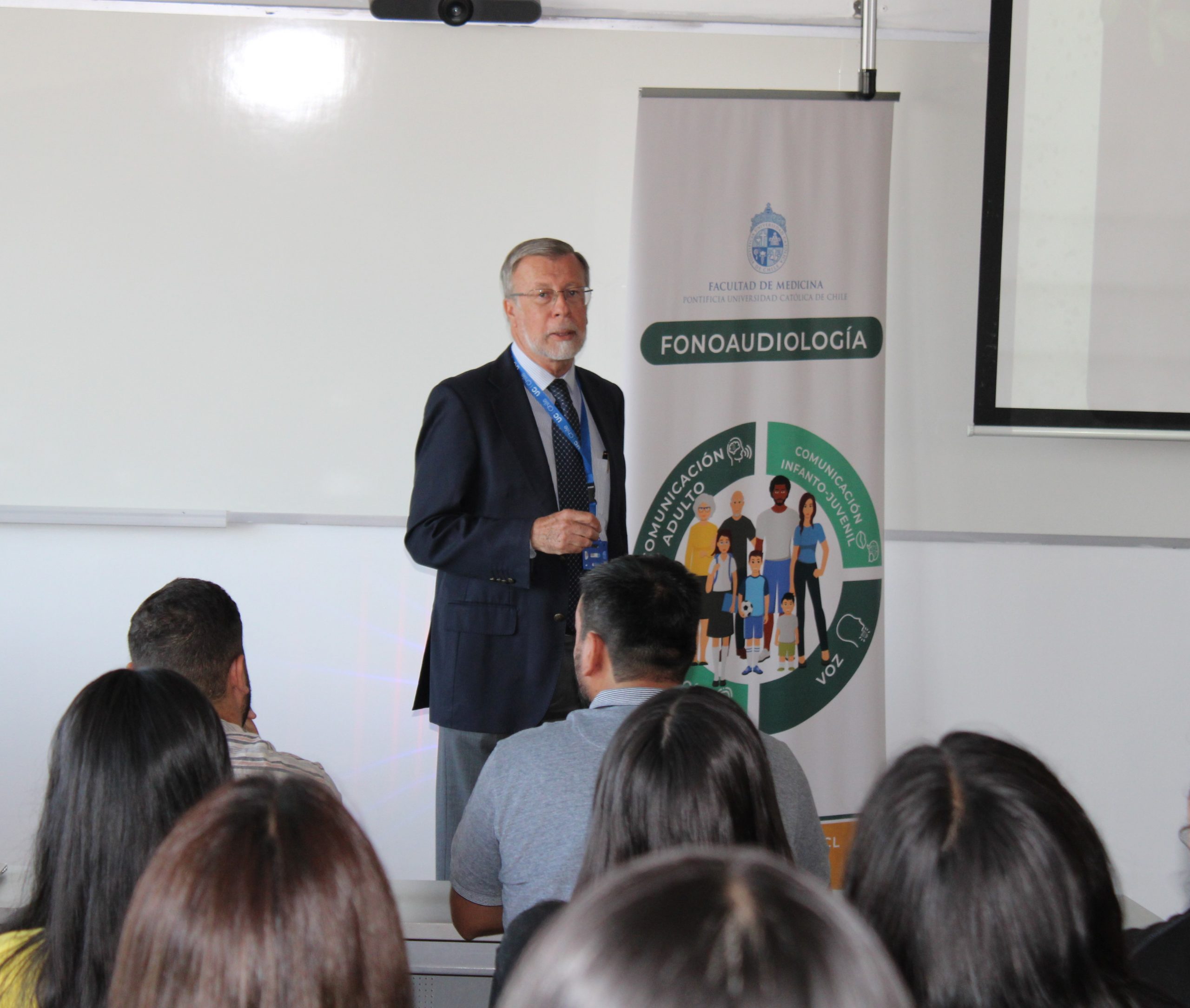 La instancia contó con el saludo por parte del director del Departamento de Ciencias de la Salud, Dr. Jaime Pereira, quien les dijo a los y las estudiantes de las cuatro carreras “nosotros tenemos la misión de formarlos como profesionales de la salud, y esto significa que cuando sean profesionales van a tratar con personas que están en una situación compleja de salud y van a depositar en ustedes, la confianza para que alivien sus problemas. Queremos, desde el primer día, inculcarles el trato humanitario tanto para el paciente como su familia”.