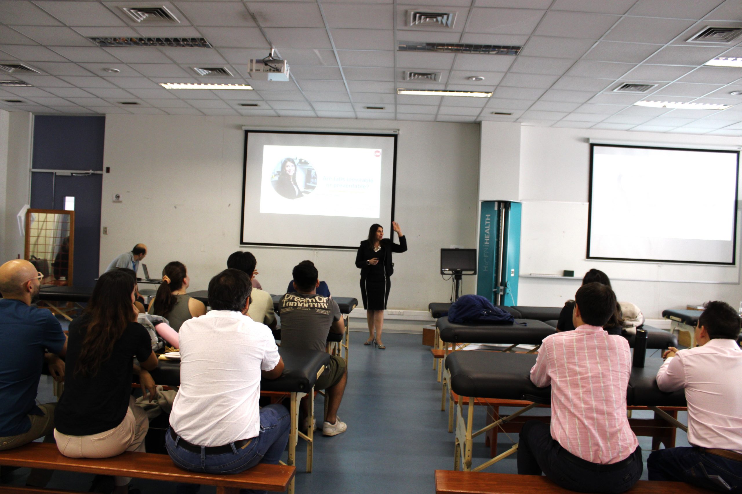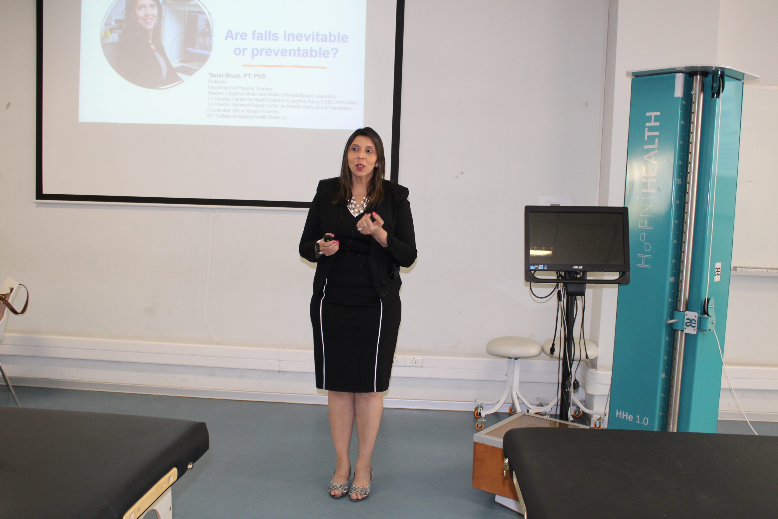 Tanvi Bhatt, Doctora y académica de Terapia Física de la Universidad de Illinois, Estados Unidos, llegó hasta el Departamento de Ciencias Salud para exponer sobre prevención de caídas y entrenamiento del balance reactivo, en el workshop organizado por el laboratorio de Análisis del Movimiento de la carrera de Kinesiología.
