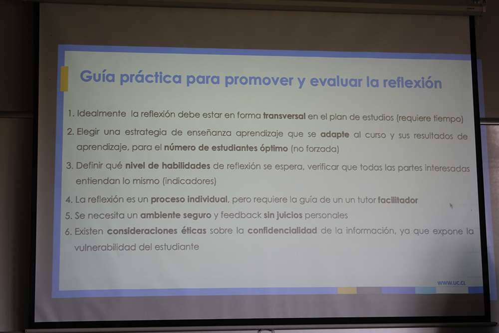 Como toda habilidad compleja, la reflexión, requiere tiempo y preparación de los docentes y estudiantes involucrados en el proceso. “Es importante estructurar diferentes estrategias de enseñanza-aprendizaje y de evaluación que se adapten a las necesidades de los estudiantes y a las características de los cursos donde se implementan”, concluye la odontóloga.