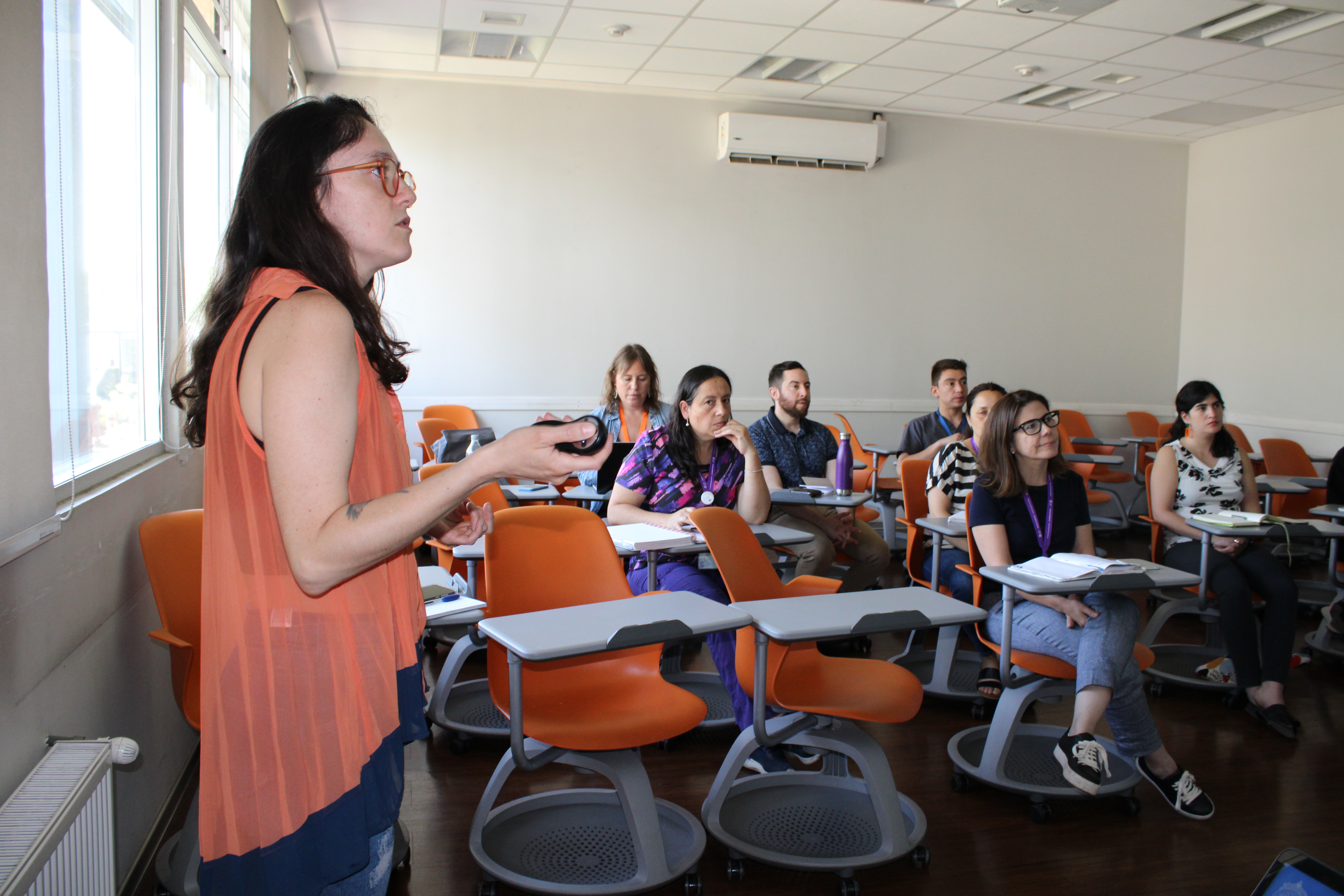El taller fue dictado por Natalia Pérez-Luco, Psicóloga Educacional y profesional de autoformación, junto a Elizabeth Medina, Coordinadora Formación Docente del Centro de Desarrollo Docente UC, se refirieron al objetivo de la actividad, la cual se enfoca en reconocer e identificar, en un curso, elementos centrales del dominio afectivo para el desarrollo de habilidades transversales