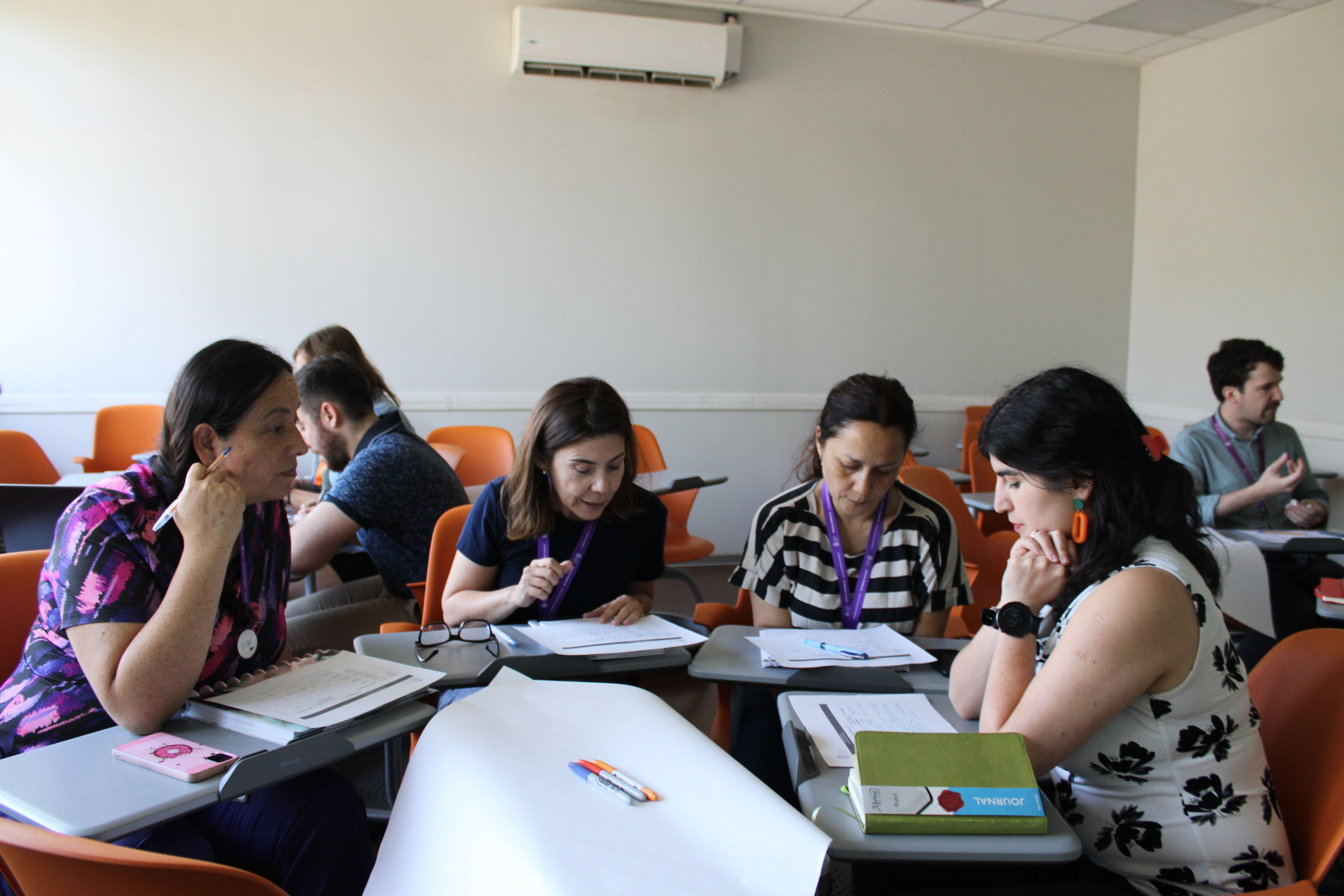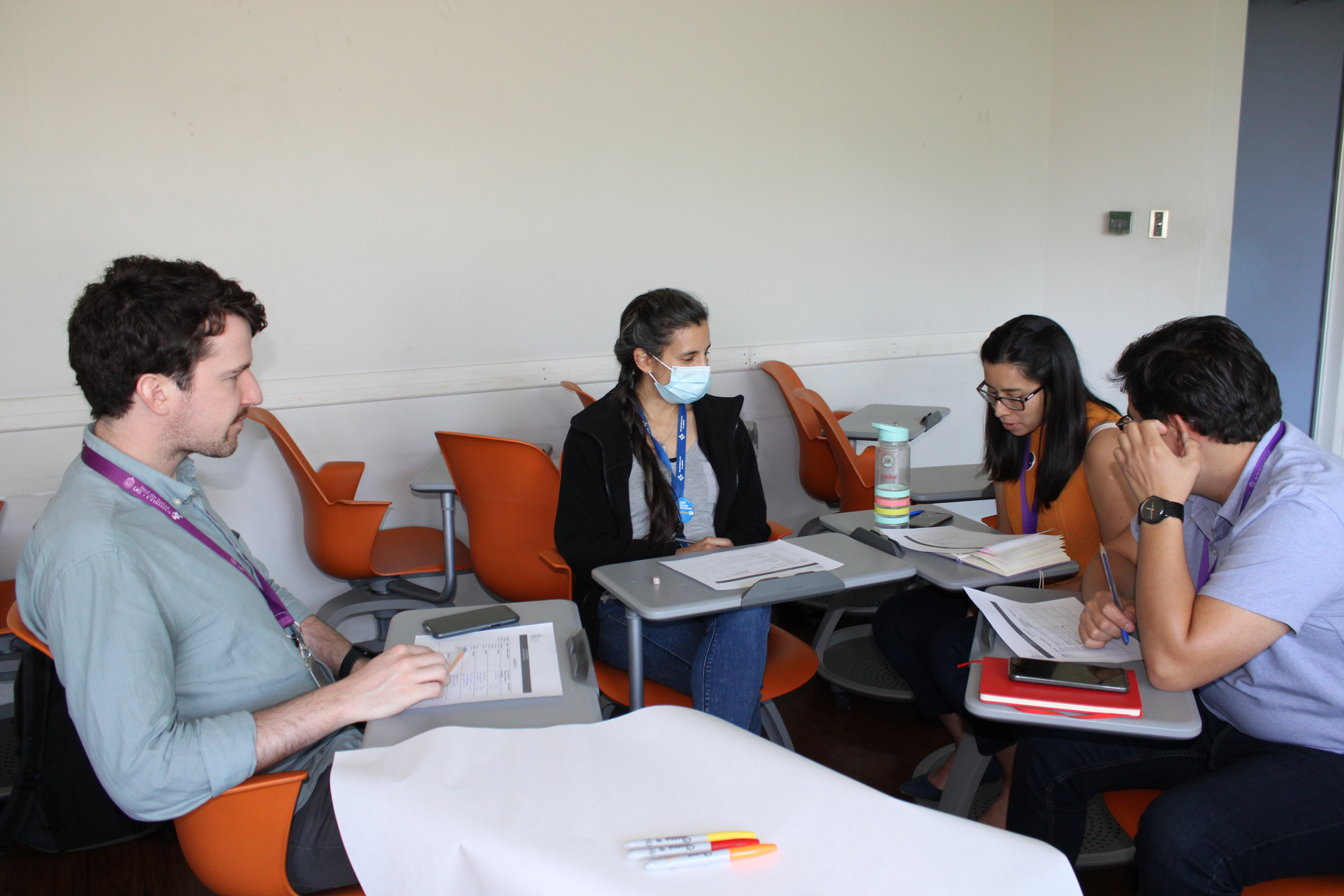 Como parte de la actividad, los docentes individualmente contestaron un cuestionario en base al resultado de aprendizaje. Y formaron grupos para comentar con sus pares, similitudes y diferencias, en busca de un consenso.