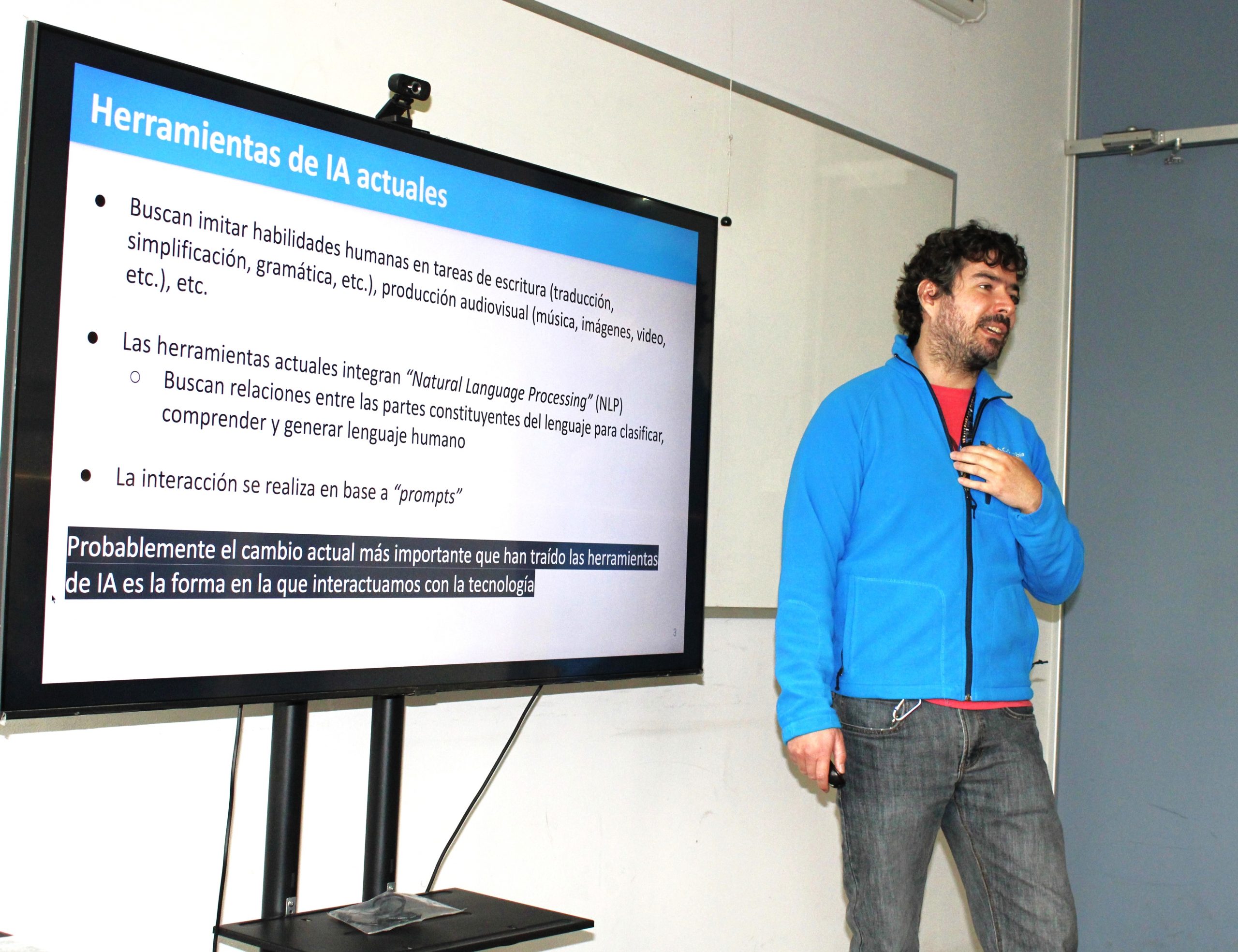 La exposición “Inteligencia Artificial una vista panorámica” a cargo del profesor Cristóbal Moenne, dio a conocer la utilización de la IA en la docencia y sus herramientas, en las que se destaca chatGPT.