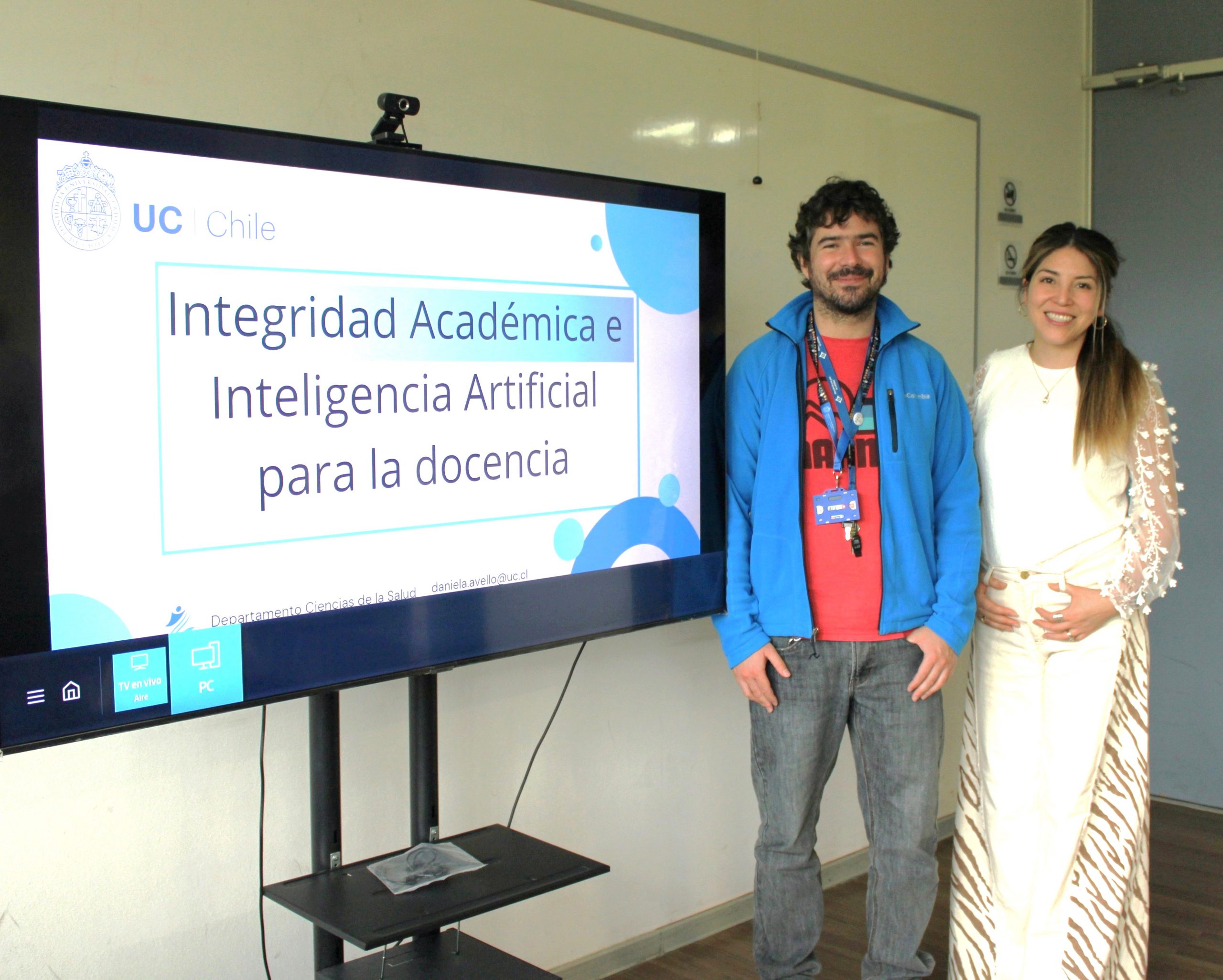 La unidad de Docencia del Departamento de Ciencias de la Salud realizó el XVI Taller sobre “Integridad académica e inteligencia artificial: aplicaciones en docencia” a cargo de los docentes Daniela Avello y Cristóbal Moenne, de las carrera de Terapia Ocupacional y Kinesiología respectivamente.